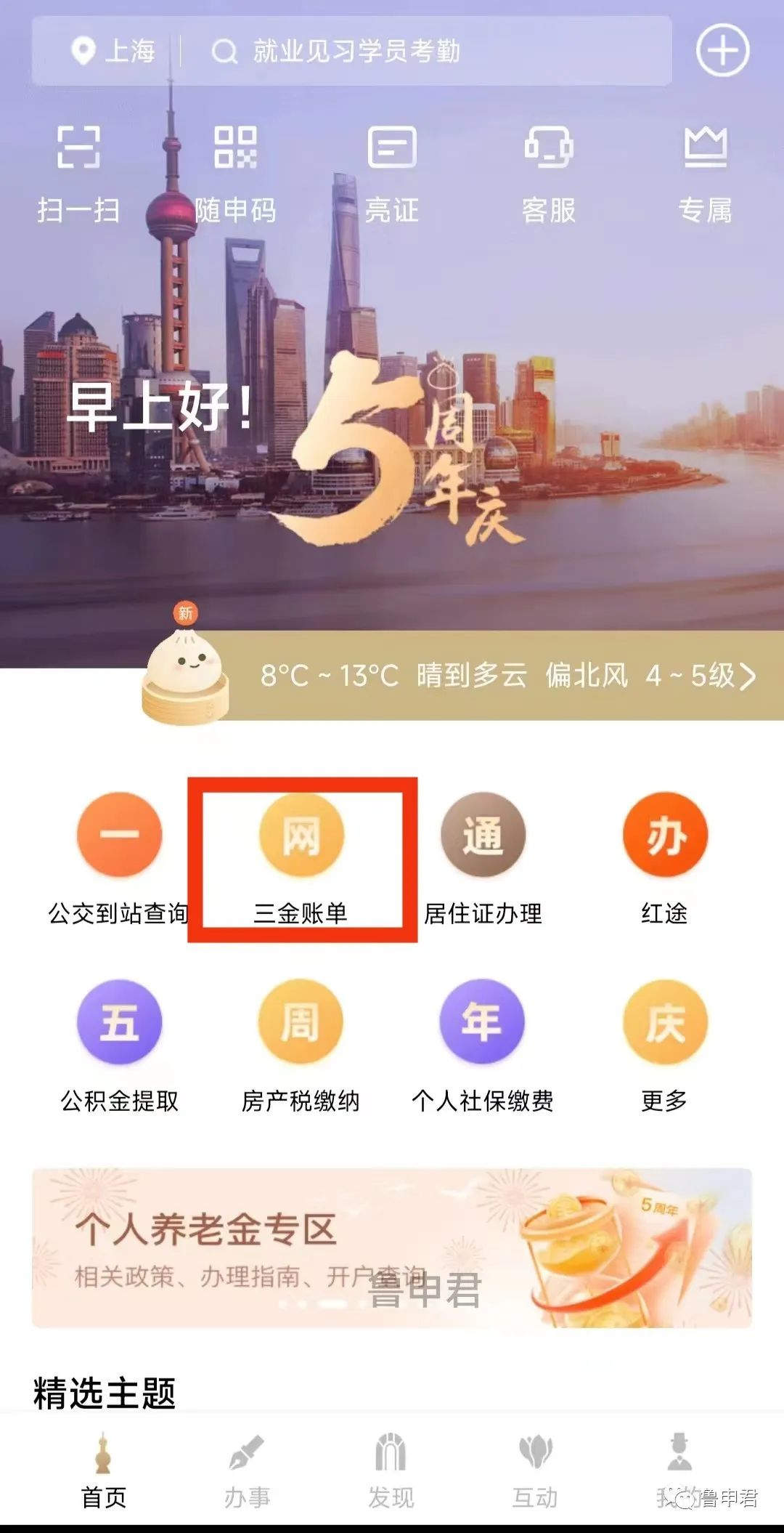 二、进入首页,登录(注册)账号,点击“三金账单”